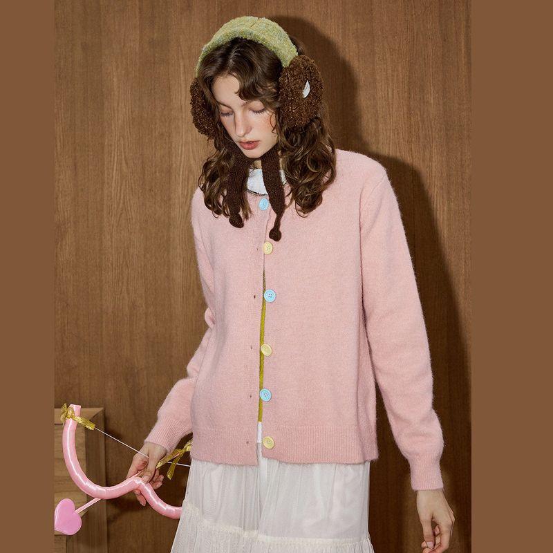 Coolhut Sweet Girly Fashion Pink Button Slimming Loose Versatile 025 Autum Women's Long-Sleeved Sweater
