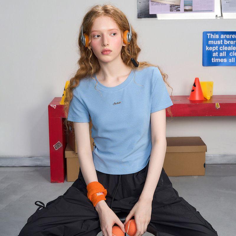 Coolhut2025 Summer Letter Embroidered Round Neck Short-Sleeved Shirt, Versatile Slim-Fitting Age-Reducing Women's Thin T-Shirt