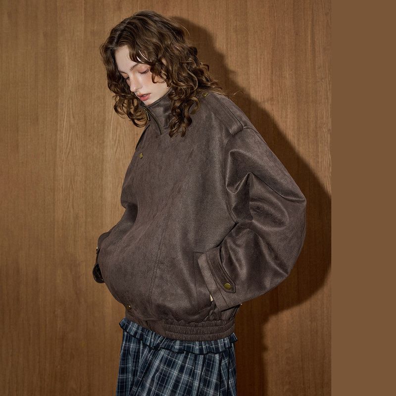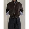 Coolhut2025 Autum Women's Fashionable Casual Versatile Loose Slimming Lapel Short Outwear Brown Leather Jacket