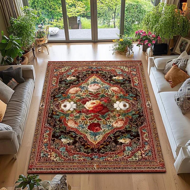 Vintage Oriental Persian Rug - Soft Plush Floral Pattern WashableStain-Resistant Area Carpet for Living Room Bedroom Home Decor