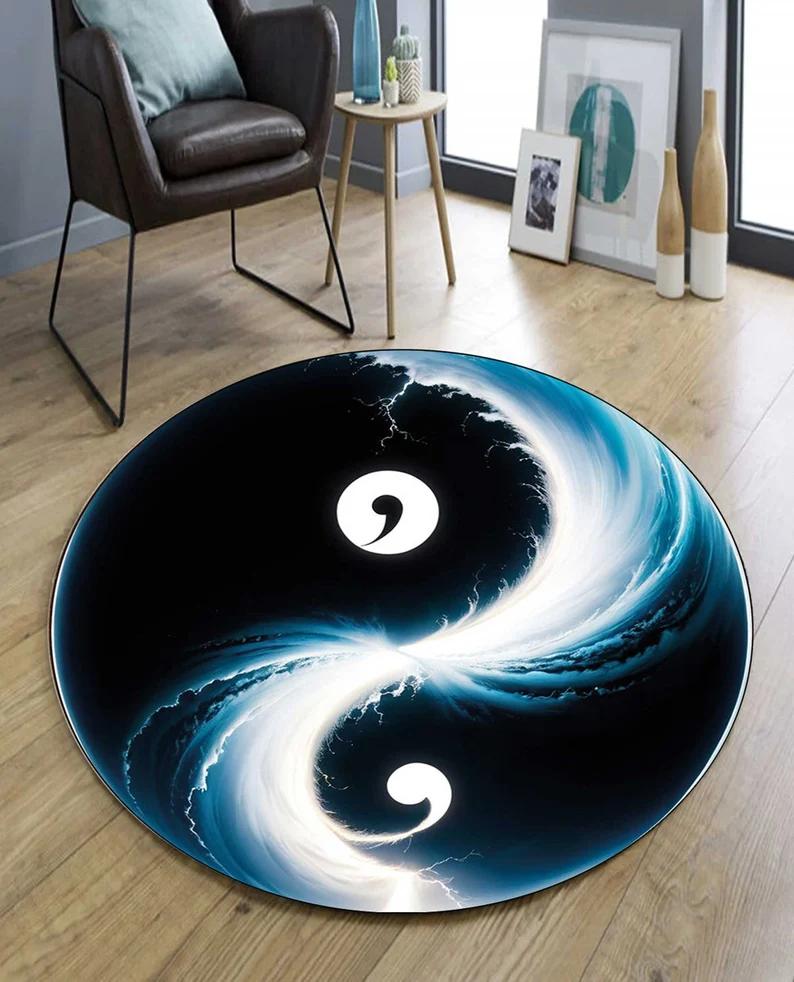 Yin Yang Symbol Round Rug Vivid Printed Circle Carpet Black and White Color Carpet Vinyl Record CD Shaped Carpet