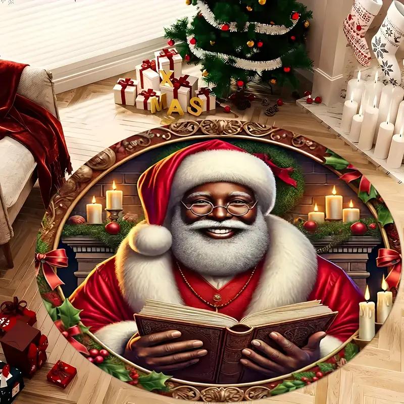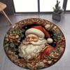 Christmas Santa Claus Round Carpet Living Room Bedroom Mat Festive Atmosphere Decorated Christmas Tree Home Rug Decoration