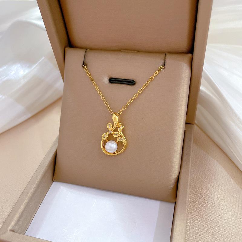 Pearl Leaf Plant Luxury Temperament Full Zirconium Necklace Women'S Fashion Trend Collarbone Chain Factory