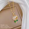 Titanium Steel Empty Green Leaf Flower Set Light Luxury Temperament Gorgeous Full Diamond Necklace Women'S Versatile Collarbone Titanium Steel Chain