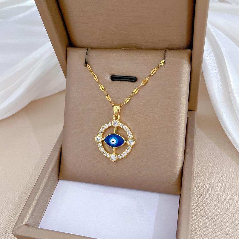 Round Eyes Light Luxury Temperament Gorgeous Full Diamond Necklace Female Versatile Collarbone Chain Titanium Steel Chain