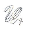 Devotional Rosary Necklace for Women, Acrylic Pearl Beads With Crosses, Fashionable Spiritual Wear