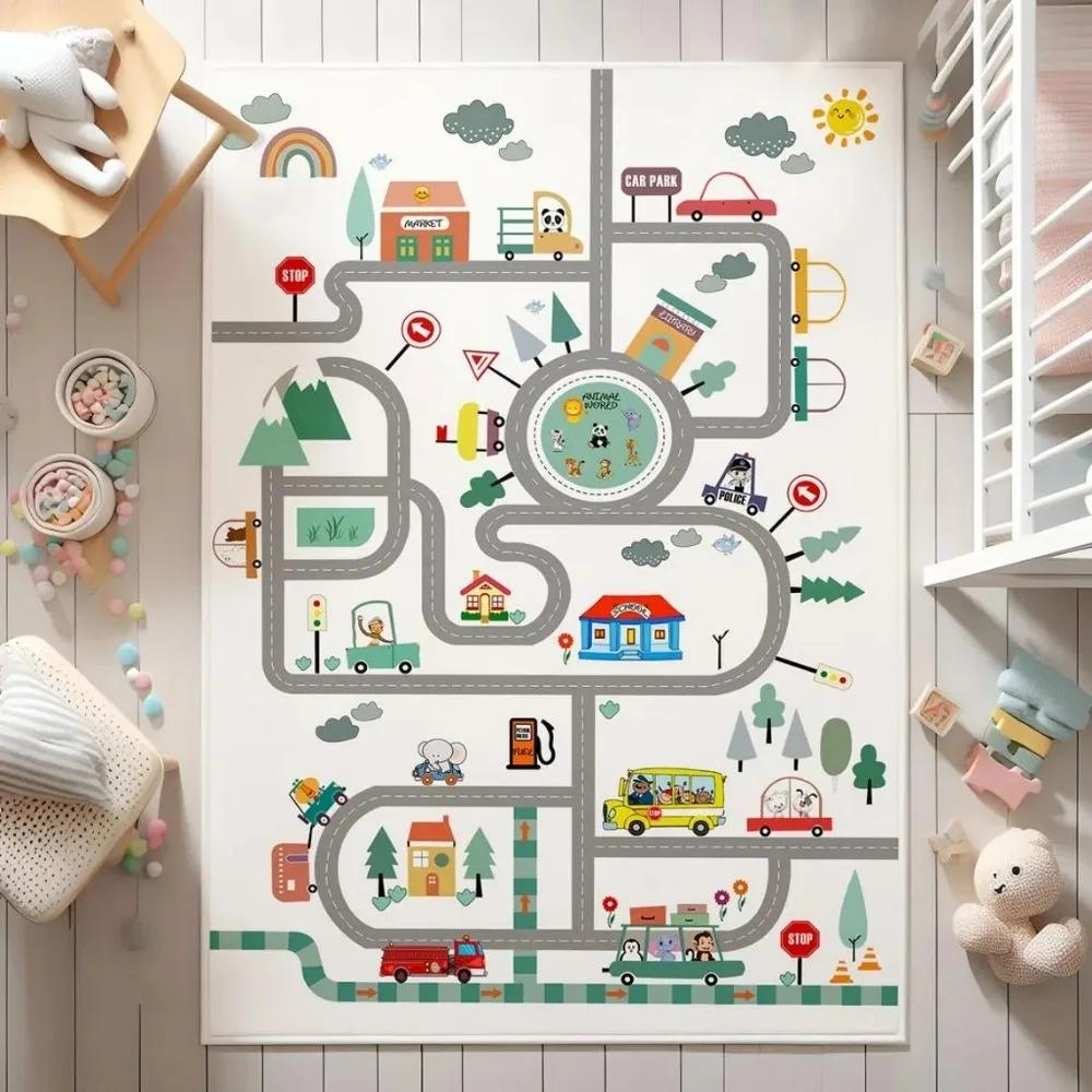 Zvířecí Město Auto Silnice Dětský Koberec Vzdělávací Dopravní Hrací Podložka Barevný Kreslený Potisk Koberec pro Dětský Pokoj Hernu
