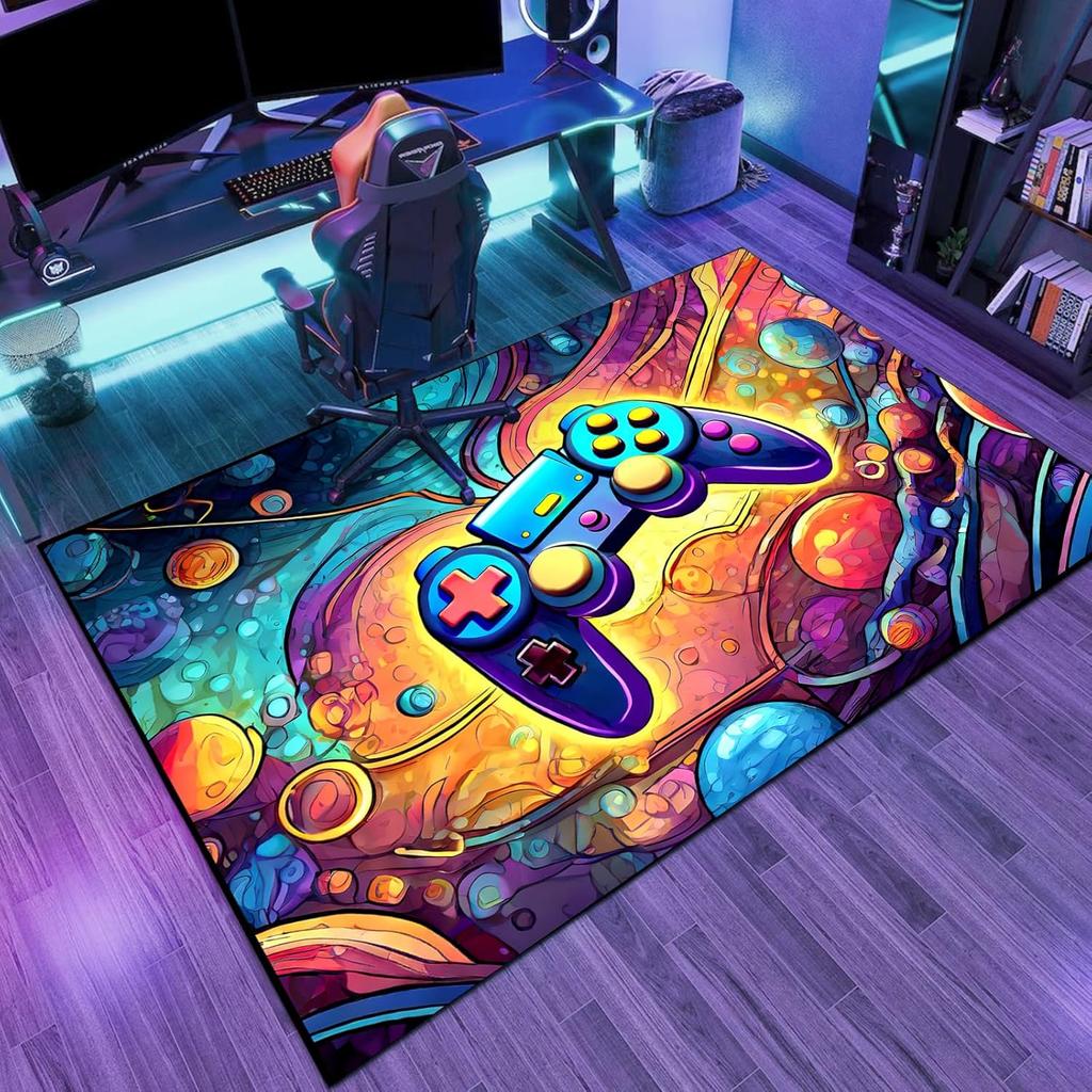 Neon Light Game Controller Anti Slip Carpet Mat Decoration Game Room Space Galaxy Pattern Floor Mat Home Living Room Decoration
