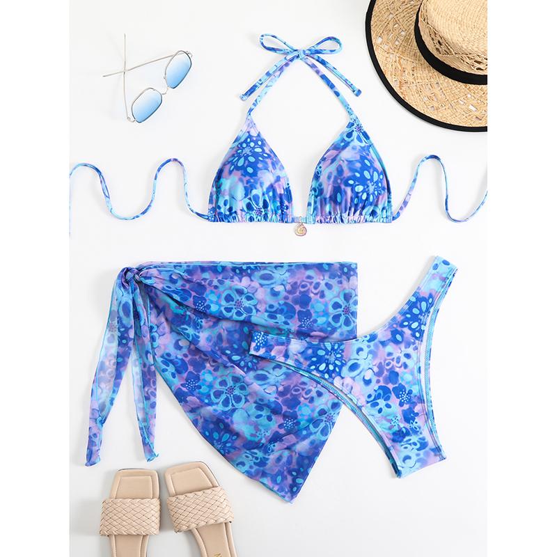 Women Halter String Bikinis With Beach Skirt Printed Swimwear Female Prints Swimsuit Bather Bathing Swimming Suit