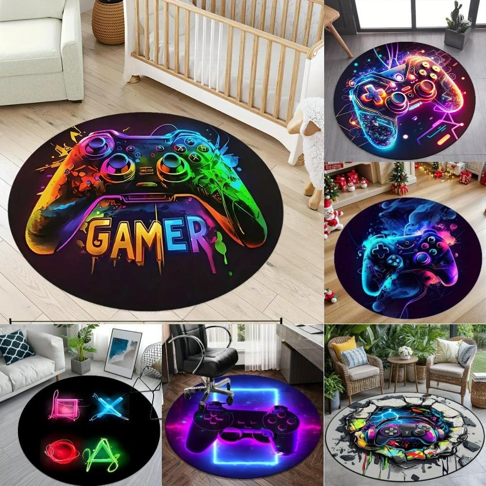 Gaming for Boys Room Gamer Casual Round Carpet with Controller Design Rug for Game Room Bedroom Decor Non-slip Floor Mat