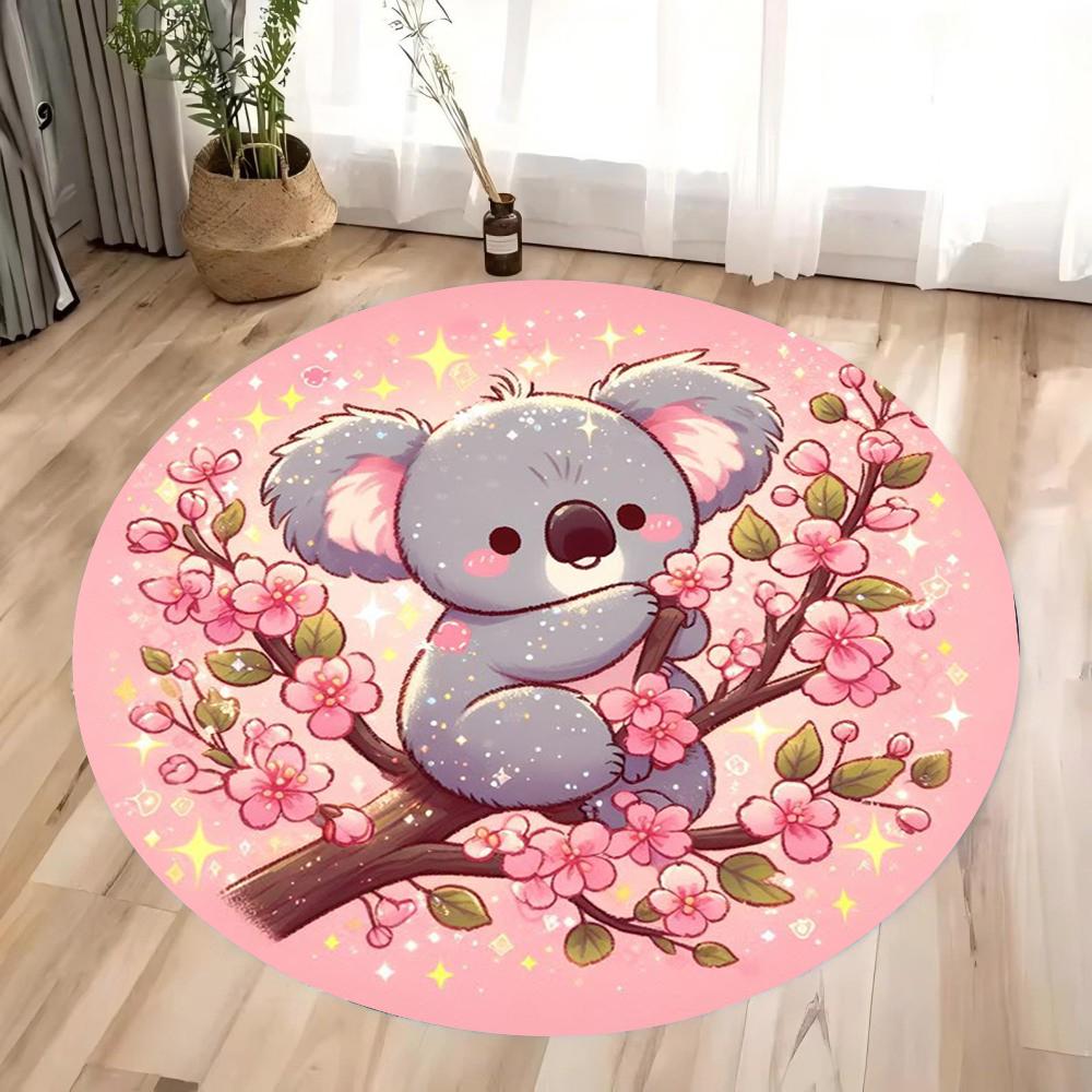 1pc Grey Koala Circular Printed Carpet on Pink Cherry Blossom Branches Children's Room Decoration Anti Slip Floor Mat