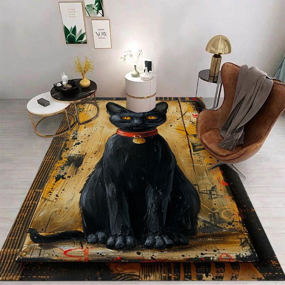 1pc Black Cat and Abstract Graffiti Background Theme Carpet Street Graffiti Carpet Carpets for Living Room Home Accessories