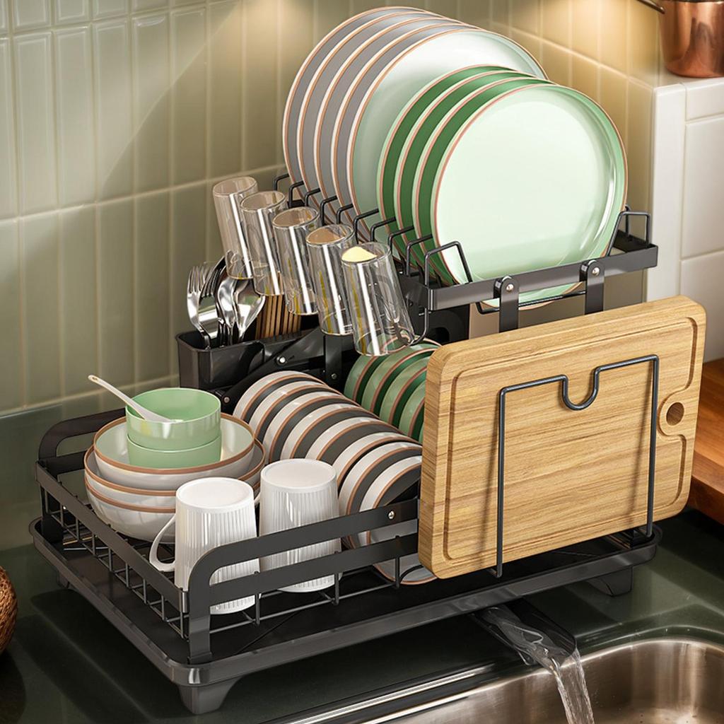 Dish Drying Rack Dish Racks for Kitchen Counter 2-Tier Draining Tray for Bowls Pots Pans Cups Utensils Cutlery Cookware RV