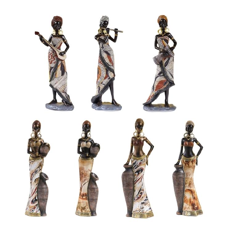 Africká dáma Pryskyřičná socha Etnické kmenové ženské sošky Exotická figurka Stolní dekorace pro domov, kancelář, obývací pokoj