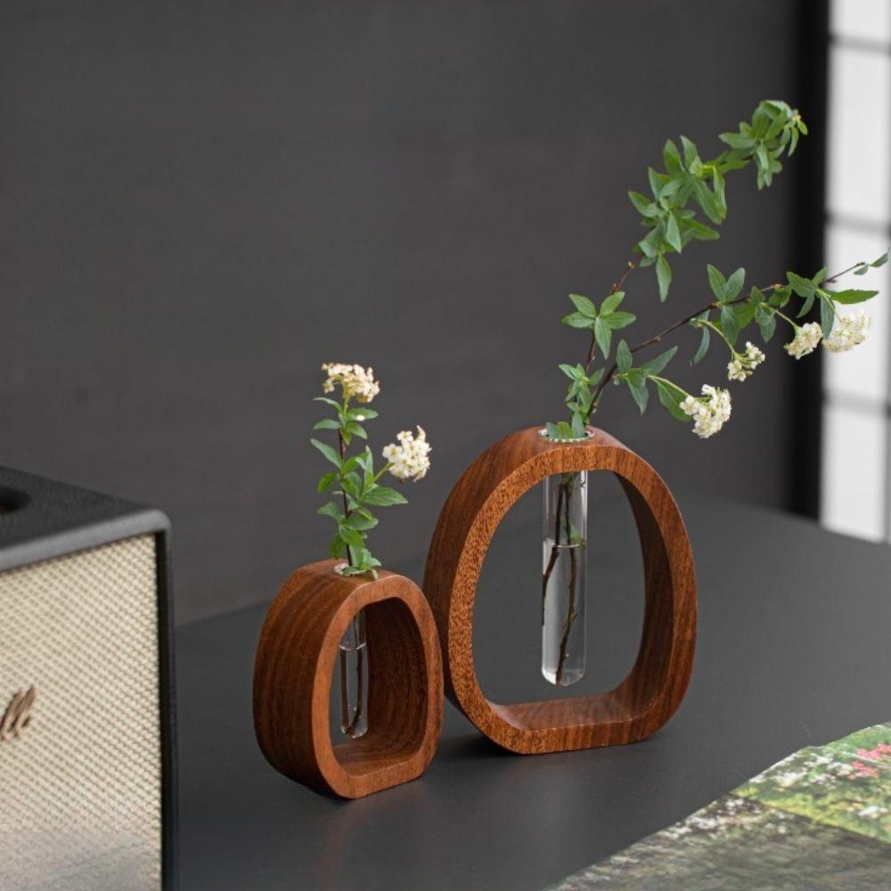Retro Glass Test Tube Vase with Solid Wood Frame Hydroponic Green Plants for Home Office Decor Hydroponic for Windowsills