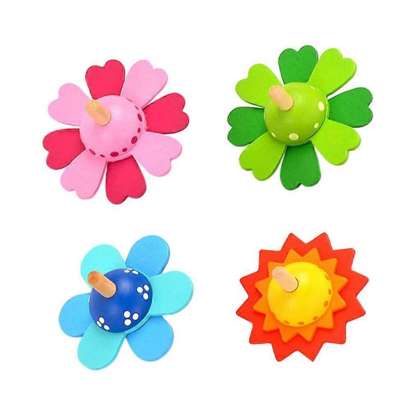 4pcs Kids Wooden Gyro Toy Pressure Relief Gyro Toys Funny Gyro Toy Children Plaything