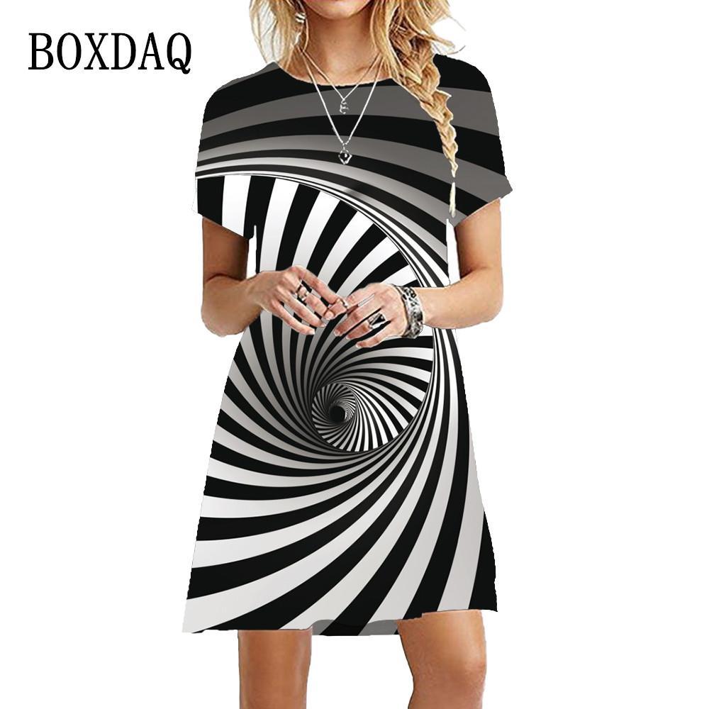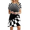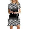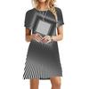 Women Fashion Optical Illusion Dresses Summer Short Sleeve Black White Striped Classic Dress Casual Pattern 3D Print Dress