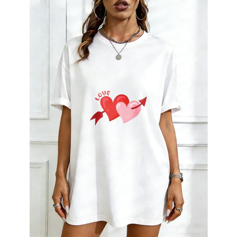 Oversized T Shirt Dress Black Love Hearts And Arrow Print For Casual Outfits