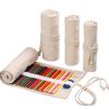 12/24/36/48/72 Holes Roll School Pencil Case Canvas Pen Bag for Girls Boys Stationery