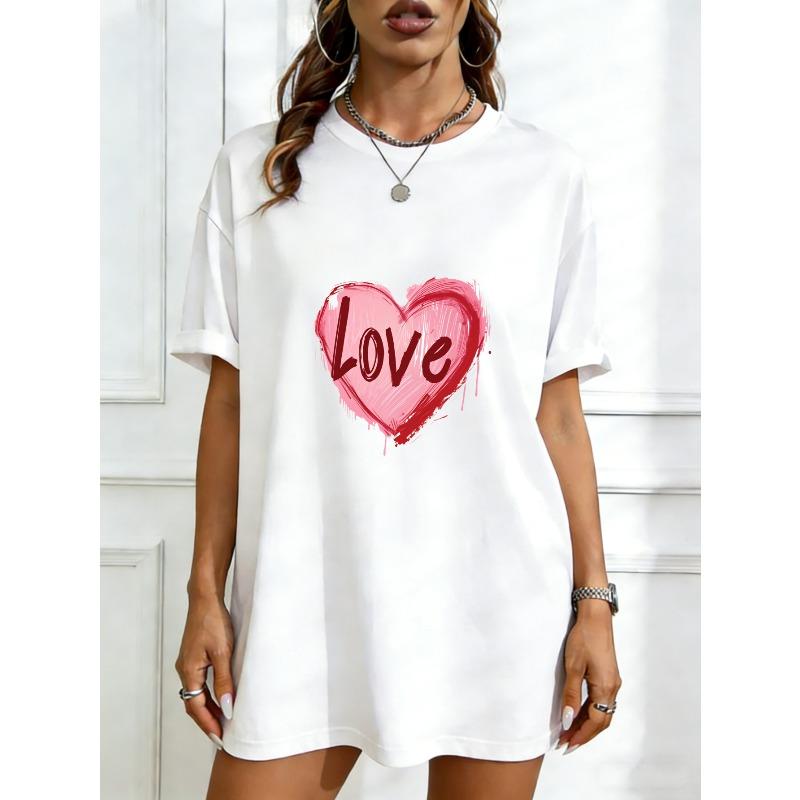 Oversized T Shirt Dress Black Love Heart Print Casual Streetwear Style For Women