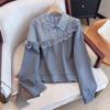 3D Decorative Women's Sweatshirt Korean Version Turndown Collar Flower Pattern Striped Blocking Color Hoodies Spring Casual Fashionable Lady Top