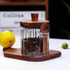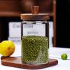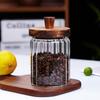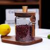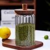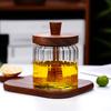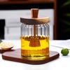 New household thickened honey storage tank with stirring stick Acacia wood cover transparent glass food sealed jar