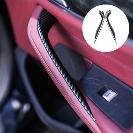 2x ABS Carbon Fiber Inner Door Pull Handle Trim Protect Cover For BMW 5 G30 G38