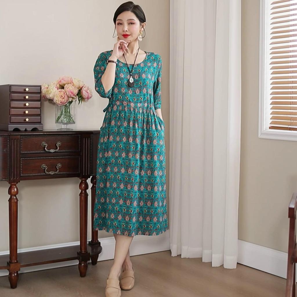 Casual Summer Women's Dresses Plus Size Half Sleeve Vintage Print Long Dress FemaleStyle: Casual