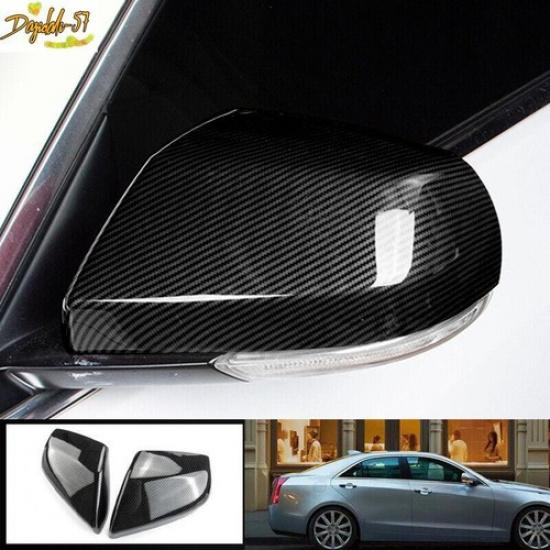 2PC Carbon Fiber ABS Rear View Side Mirror Cover Trim For Cadillac ATS 2013-