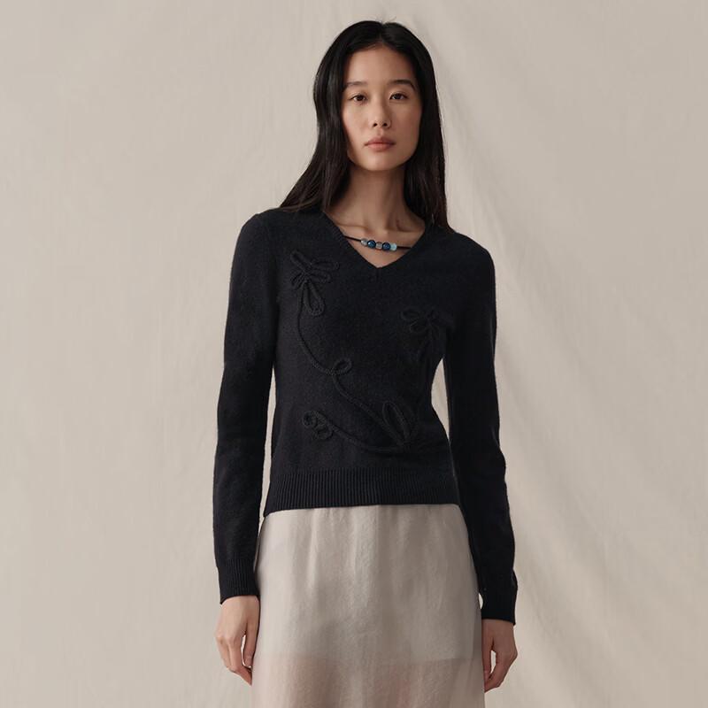 GREEN BELT Women's 100% Wool Beaded V-Neck Sweater