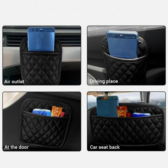 Phone Holder Organizer Pouch Car PU Leather Stick-up Storage Bag Decor Pocket
