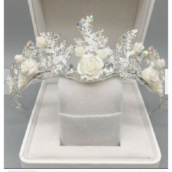 5cm Tall AB Crystal Flower Rose Gold Wedding Princess Prom Tiara Crown 2 Colours