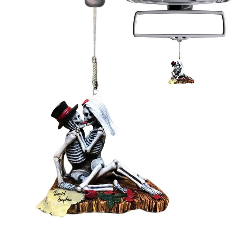 Cartoon Skull Car Rearview Mirror Acrylic Pendant Funny Car Ornament Charm Accessories Halloween Gothic Swing Pendant for Auto
