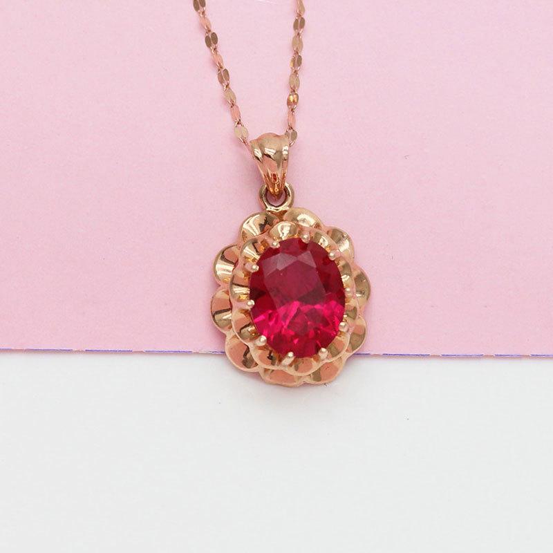 Fialová Zlatá Barva Zlatá Móda Lehký Luxus Elegantní Temperament Pozlacená Růžovým Zlatem Květinový Vaječný Povrch Červený Kámen Přívěsek Řetízek na Klíční kost