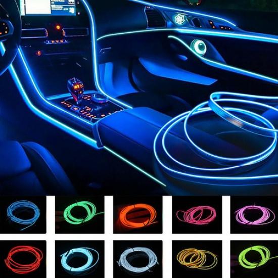 2m EL Wire Neon Light For Car Interior LED Atmosphere Strip Decor Asscessories