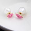 E903 Creative Stud Earrings, Double Sided Pearl Lips Pearl Red Lip Size Stud Earrings Jewelry