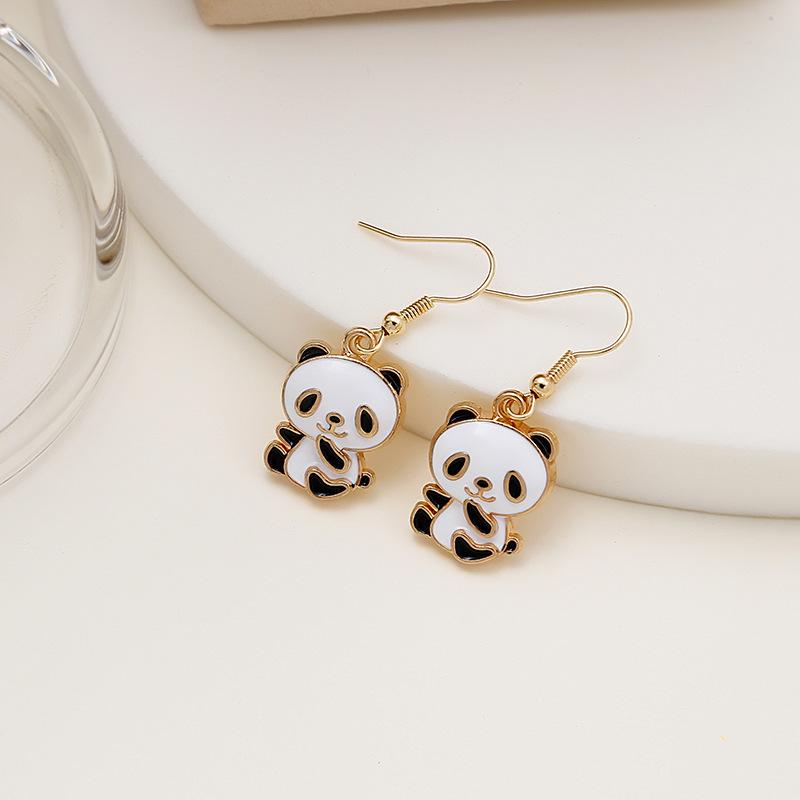 Chinese Style New Red Panda Exquisite Cute Metal Geometric Earrings Pendant Ear Jewelry