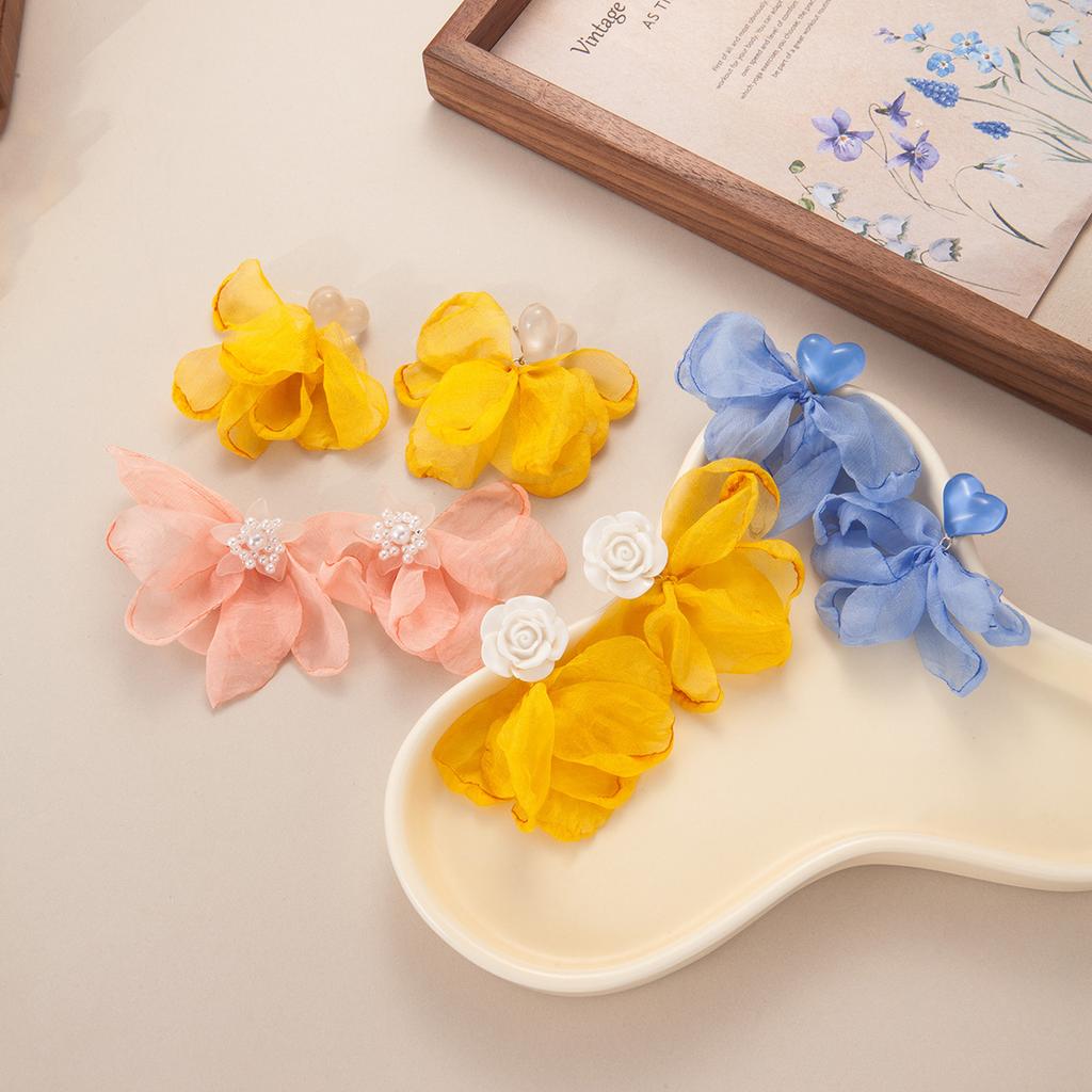 Summer Super Fairy Vacation Style Earrings Seaside Sweet Fabric Flower Stud Earrings Femininity Advanced Sense Gentle Earrings