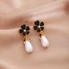 French Retro Elegant Oil Drop Flower Water Drop Pearl Earrings, Light Luxury High Sense Medieval Vintage Earrings Women