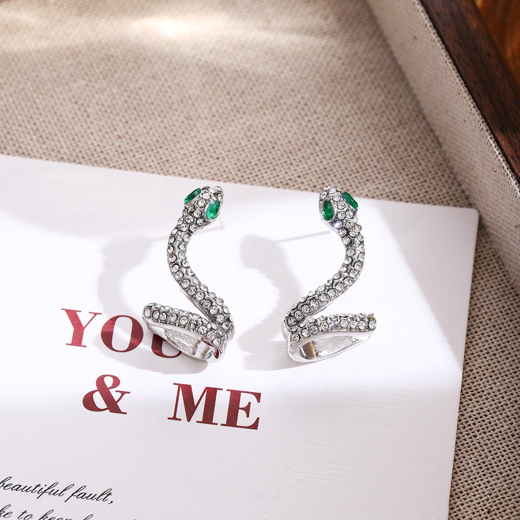 Year Of The Snake Personality Diamond-Set Design Snake Earrings, Light Luxury Cold Wind High-End Fashion Temperament Earrings