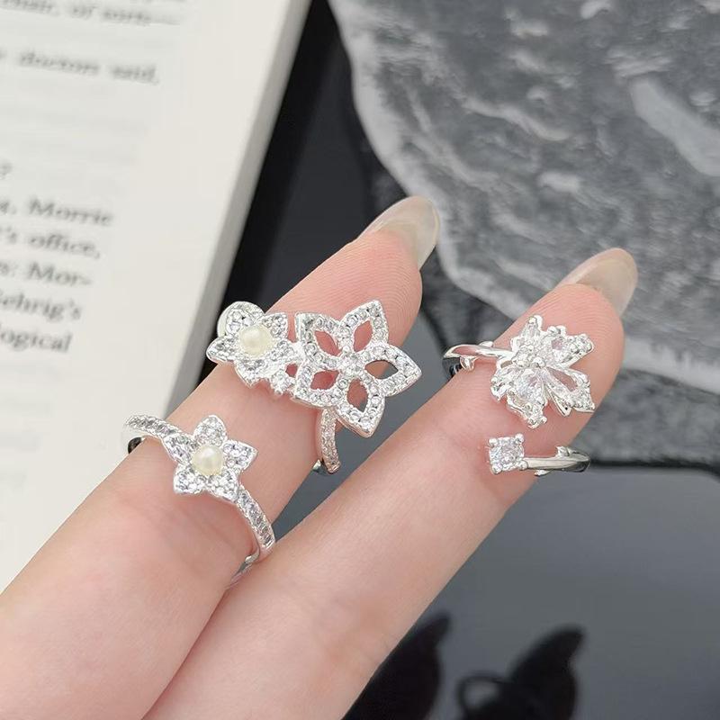 Super Fairy Full Diamond Zircon Hollow Flower Maple Leaf Five-Pointed Star Bead Opening Ring Niche High-End Ring