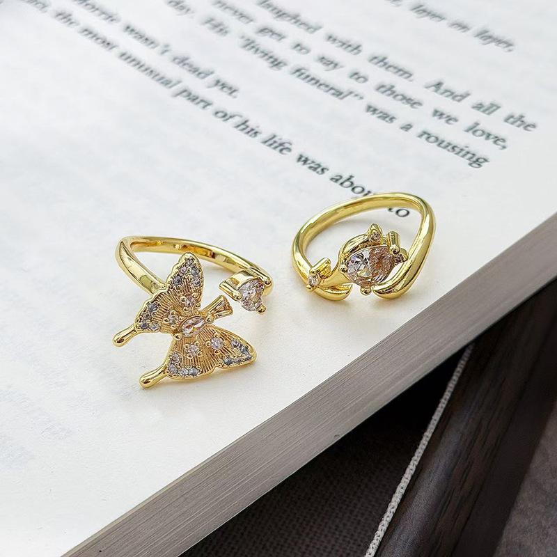 Mori Full Diamond Light Luxury Butterfly Flower Zircon Ring Female Niche High-End Light Luxury Index Finger Ring