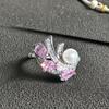 Sweet Pink Diamond Ice Flower Full Of Diamonds Zircon Temperament Flower Opening Ring Niche Design Sense Light Luxury High Sense Ring