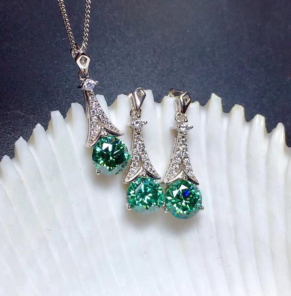 Platinový přívěsek Pt950 s jedním karátem diamantů, osmi srdci a osmi šípy Náušnice s modrozeleným moissanitem Imitace Náušnice Eiffelova věž