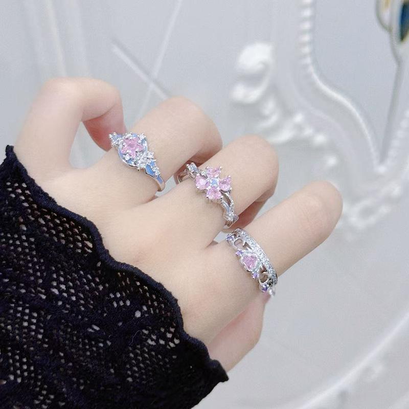Sweet Enamel Dripping Oil Pink Full Diamond Zir*****Pen Ring Exquisite Niche High Sense Stacked Fashion Ring Woman