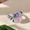 Heavy Industry Flower Sweet Cool Pink Purple Diamond Twin Stone Explosive High Sense Opening Ring Women'S Light Luxury Color Treasure Ring