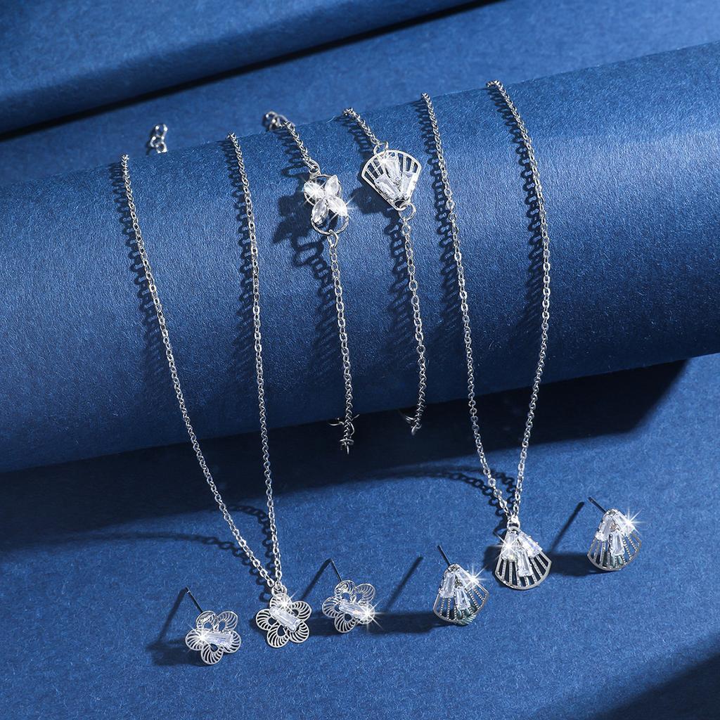 Copper Jewelry Women'S Light Luxury Simple Style Zircon Necklace Earrings Bracelet Ring Four-Piece Set