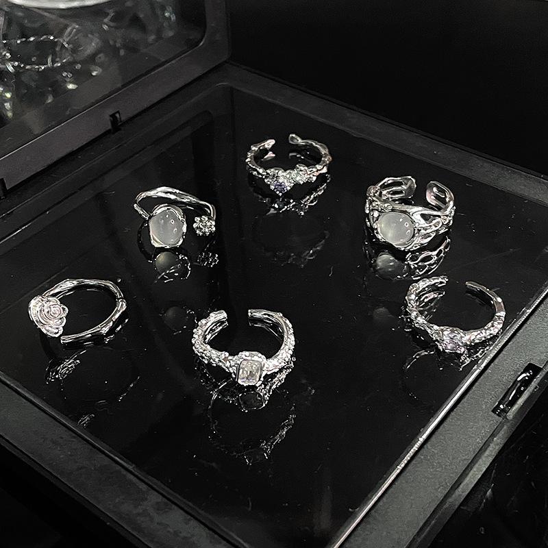 Cold Wind Moonstone Personality Niche Design Sense Advanced Sense French Irregular Opening Ring Female