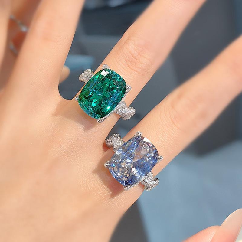 Heavy Industry Luxury Full Diamond Large Carat Ice Flower Cut Paraiba Ring High Carbon Diamond Tanzanian Blue Fat Rectangular Diamond Ring Women