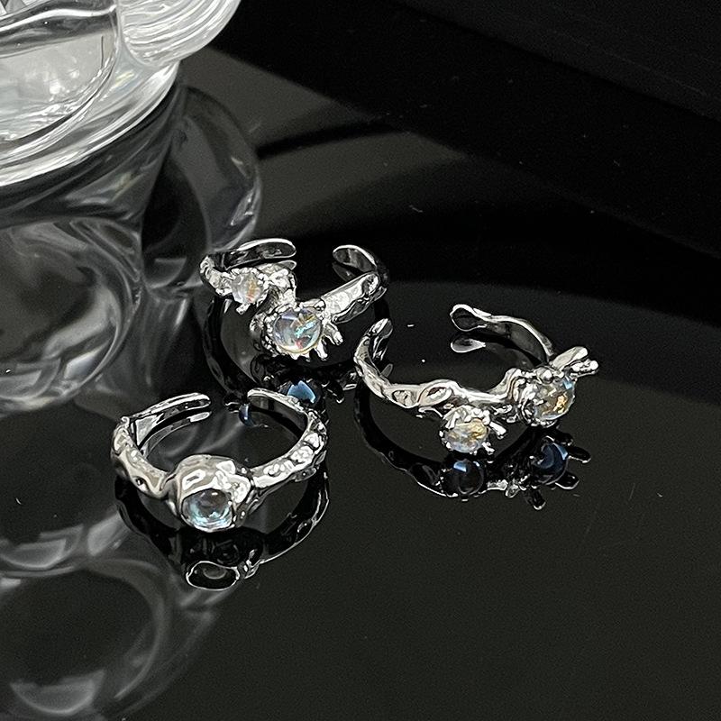 Měsíční kámen Niche Design Studený vítr Prsten Dámský Drahokam High-End Francouzský Nepravidelný plisovaný prsten